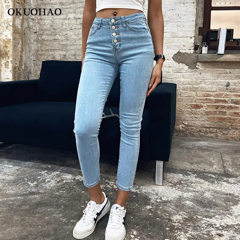 Mejor Vaqueros de Okuohao Jeans Store por Vaqueros elásticos de cintura alta para mujer, pantalones de Vaqueros pitillo ajustados a la moda, pantalones vaqueros de cintura de plástico para levantamiento de cintura 2020